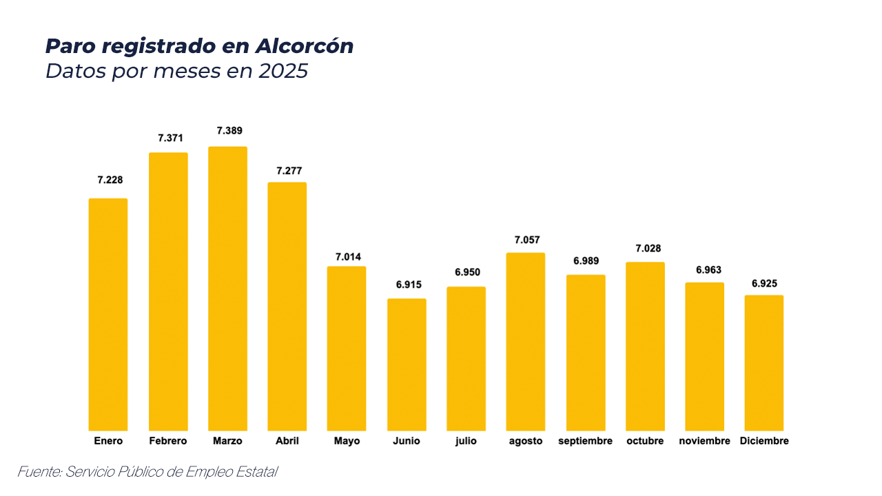 Alcorcón finaliza el año 2025 con 6.925 personas desempleadas en el mes de diciembre, la cifra más baja para este mes desde 2006, hace 19 años. El municipio finaliza así un año muy positivo para el empleo, en el que la ciudad ha conseguido bajar de la barrera de las 7.000 personas en paro por primera vez en casi dos décadas.