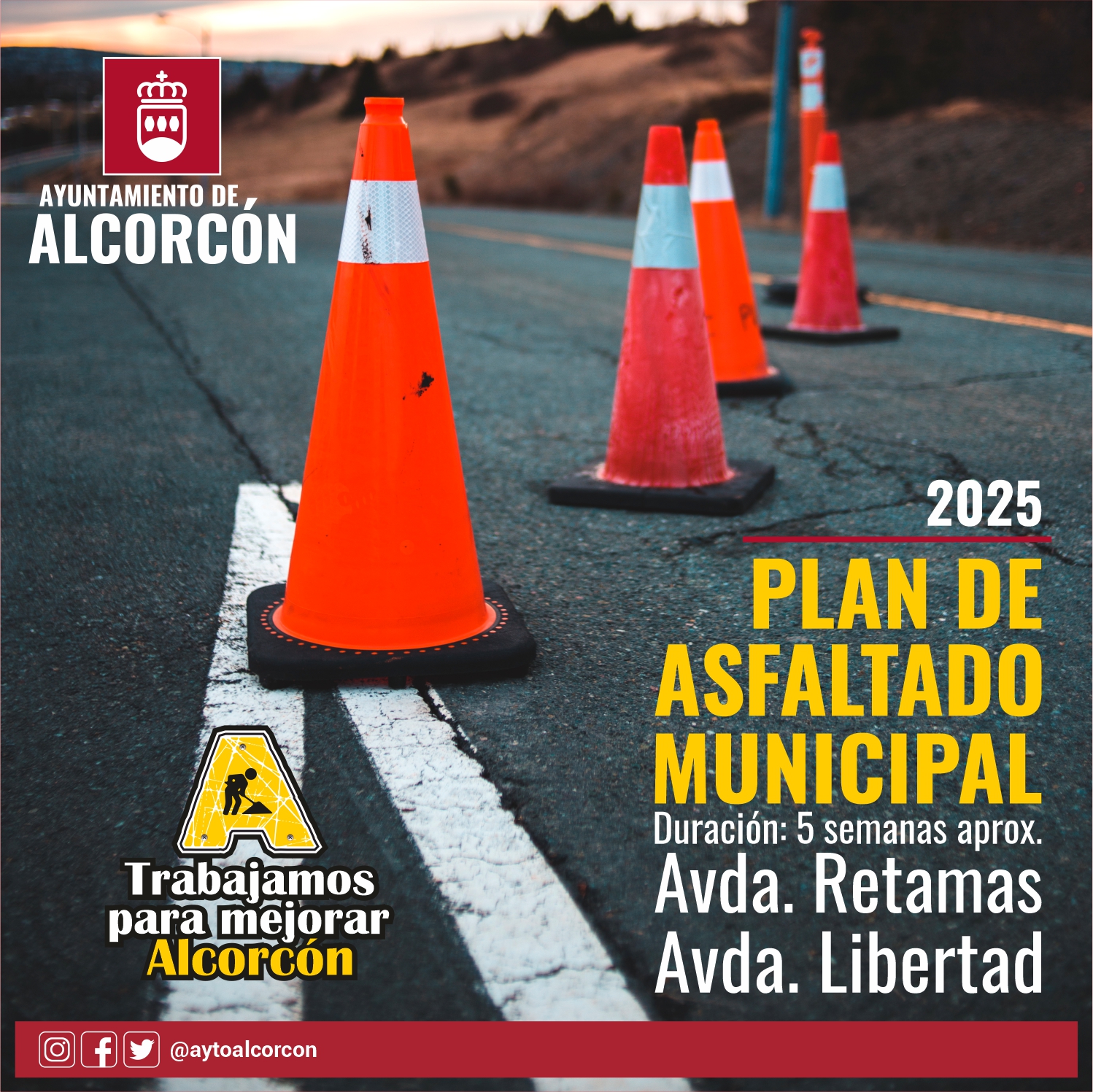 El Ayuntamiento de Alcorcón inicia el próximo lunes las actuaciones enmarcadas en el Plan Municipal de Asfaltado 2025 que actuará en varias calles de la ciudad con una duración aproximada de cinco semanas.
