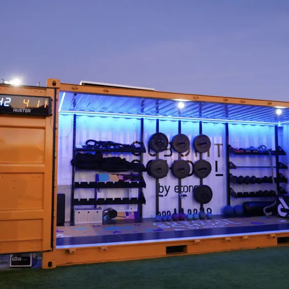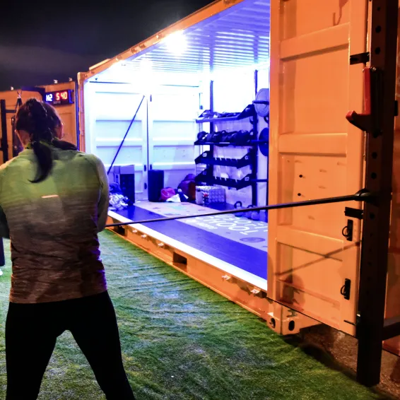 Se trata de un gimnasio portátil y al aire libre que dispone de material deportivo tanto en el interior (kettlebells, mancuernas, discos y barras de halterofilia, sacos…) como en su propia estructura, con anillas, racks y cuerda.