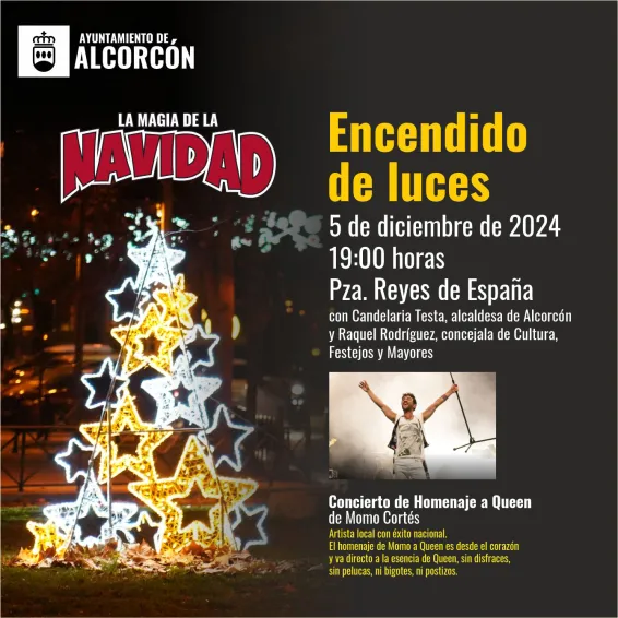 La Navidad Alcorcón 2024 será la más sostenible de todas las que se han celebrado hasta el momento. El próximo 5 de diciembre a las 19 horas tendrá lugar el tradicional encendido de luces navideñas en la Plaza Reyes de España de la ciudad. Tras el acto y para dar la bienvenida a esta festividad, el artista local con trayectoria internacional, considerado como el mejor Tributo a Queen, Momo Cortés, actuará para todos y todas sus vecinas en el mismo lugar.