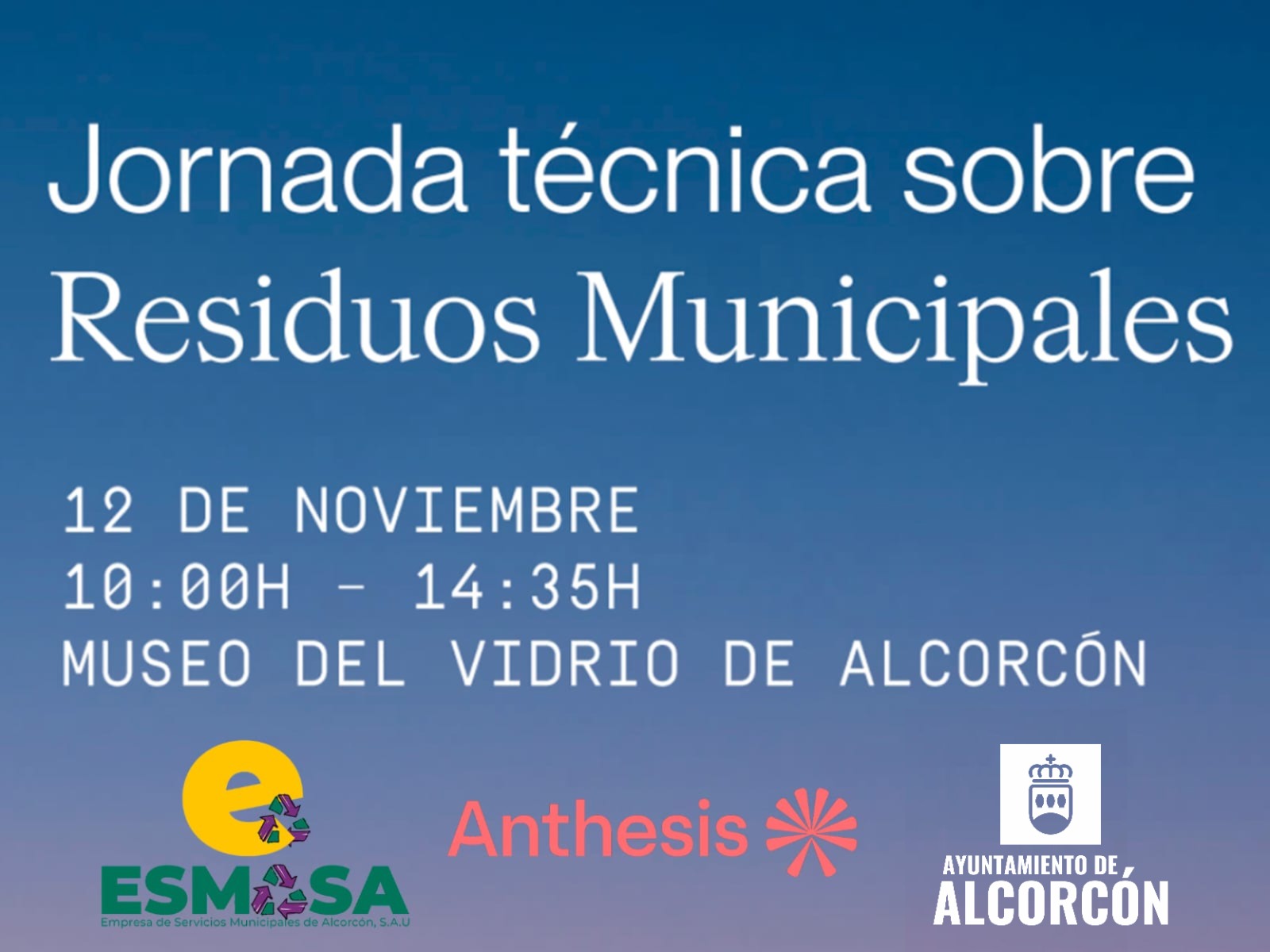 El próximo miércoles, 12 de noviembre, el Museo de Arte en Vidrio de Alcorcón (MAVA), situado en el Castillo Grande de San José de Valderas, acogerá la Jornada Técnica sobre Residuos Municipales, un encuentro organizado de forma conjunta por ESMASA (Empresa de Servicios Municipales de Alcorcón) y Anthesis Group, compañía especializada en sostenibilidad, con la colaboración del Ayuntamiento de Alcorcón.