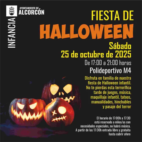 La ‘Fiesta de Halloween’ comienza en nuestra ciudad este fin de semana gracias a la actividad impulsada desde Infancia para toda la familia en el polideportivo M4. Juegos, música, maquillaje infantil, tattoos, manualidades, hinchables y pasaje del terror, son solo algunas de las propuestas en las que podrán participar pequeños y mayores este sábado 25 de octubre de 17 a 21 horas.