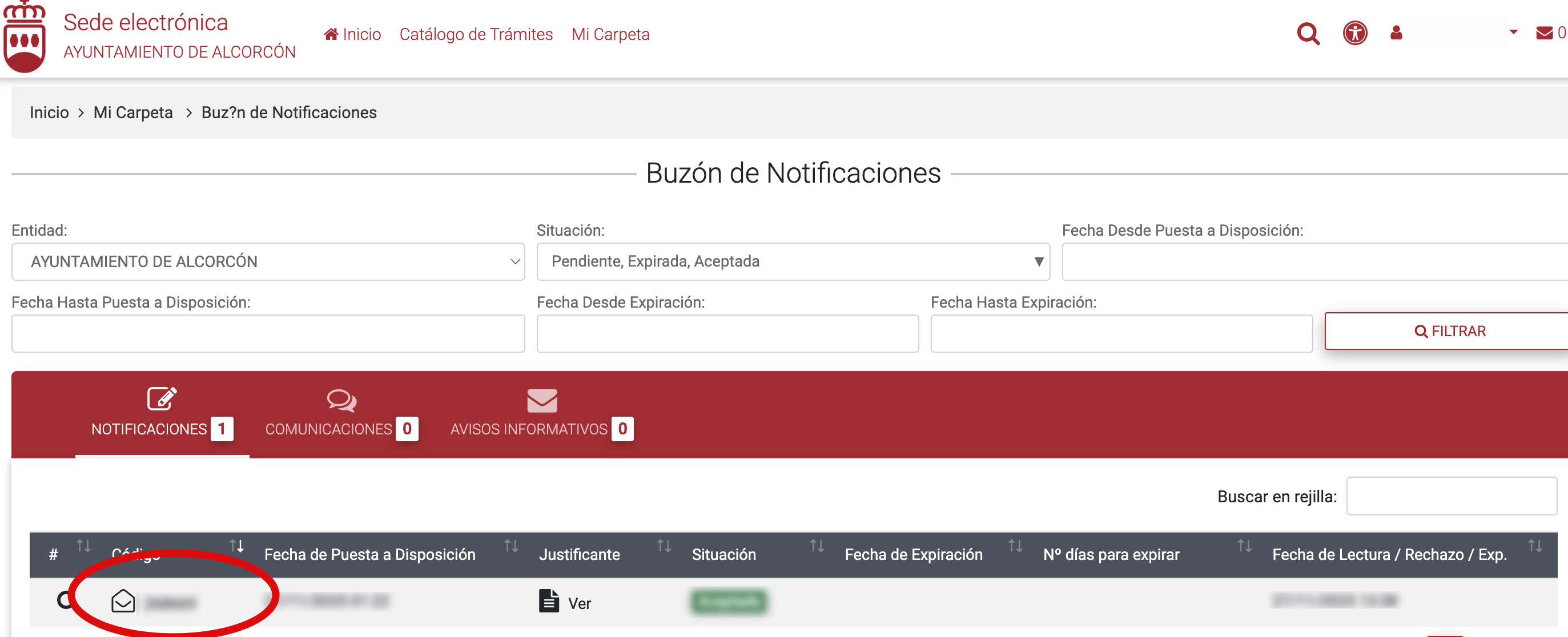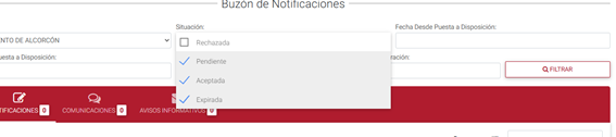 Si crees que no lo has descargado bien o quieres volver a visualizar el expediente, accede de nuevo al Buzón de Notificaciones y vuelve a consultarla. En el caso de que no aparezca, asegúrate de que en el apartado Buzón de Notificaciones tienes seleccionada la situación 'Aceptada' para que aparezcan todas ella.