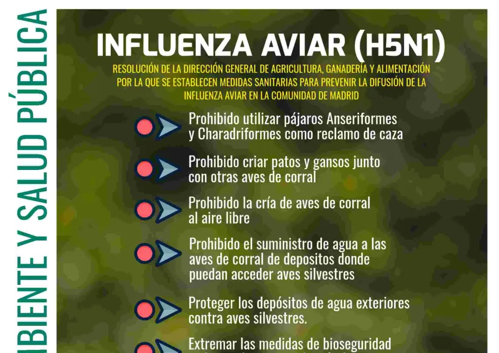 La Comunidad de Madrid ha activado medidas sanitarias de prevención frente a la influenza aviar (H5N1) con el objetivo de proteger la salud animal y evitar la propagación del virus.