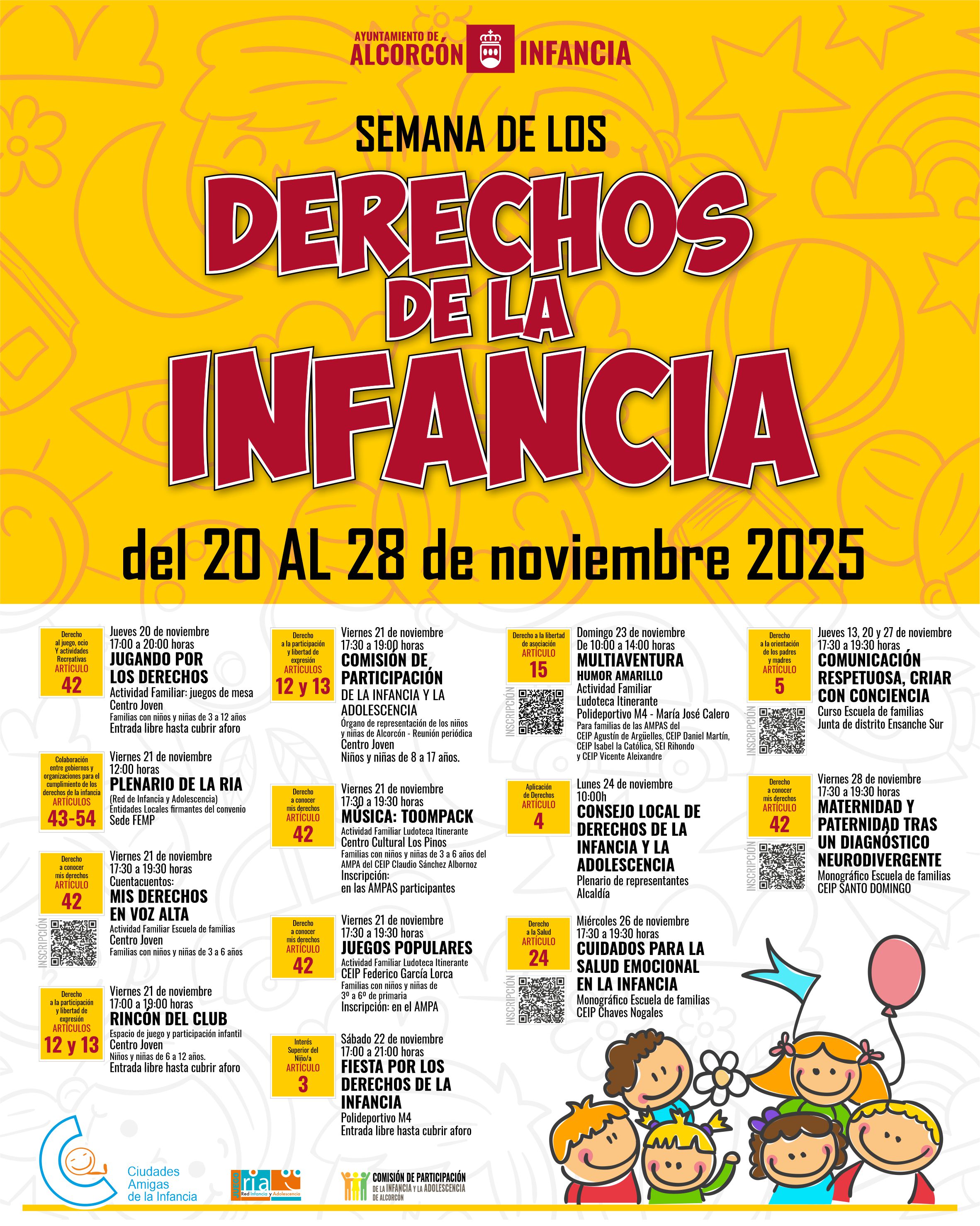 - La programación arranca el jueves 20 de noviembre con la actividad familiar ‘Jugando por los derechos’ que se desarrollará de 17 a 20 en el Centro Joven y contará con diversos encuentros para toda la familia hasta el viernes 28 de noviembre.