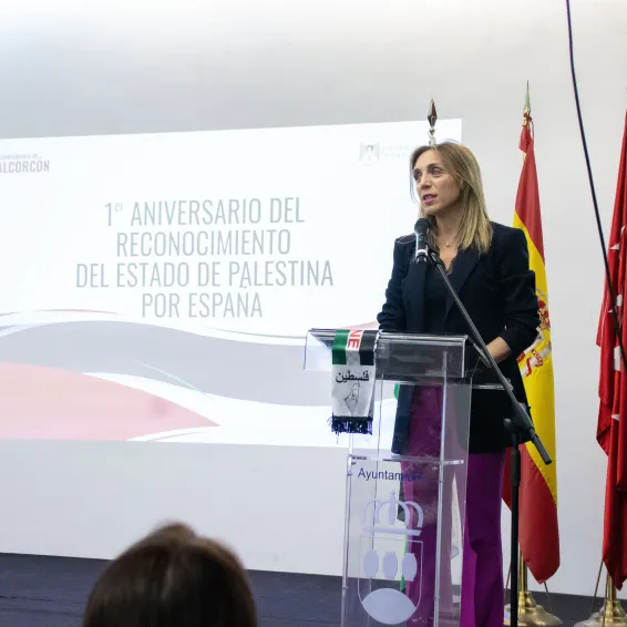 “La historia no va a perdonar lo que está pasando con el pueblo palestino; debemos elegir dónde estamos en este momento histórico clave: si nos comprometemos o no con la defensa de los derechos humanos o en contra de la dignidad”, ha señalado la alcaldesa de Alcorcón, Candelaria Testa, durante el acto para conmemorar el reconocimiento del Estado Palestino por parte del Gobierno de España.