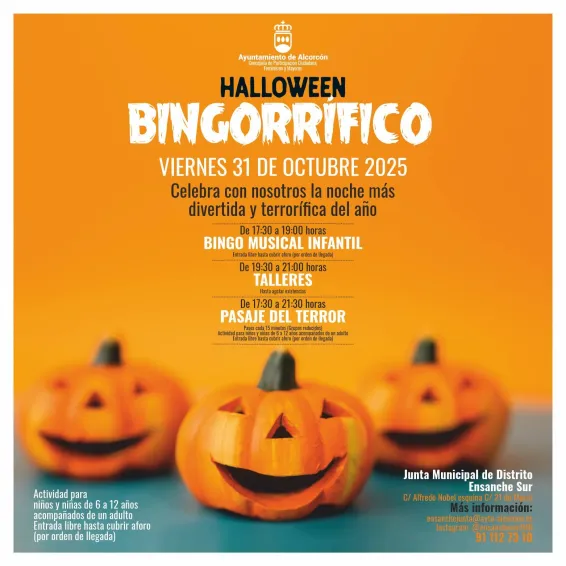 Alcorcón vuelve a impulsar una completa agenda de actividades para celebrar en familia la fiesta más terrorífica del año, Halloween, con diversas citas como un ‘bingorrífico’, pasajes del terror y fiestas de disfraces.