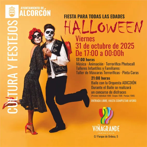 El Centro Cívico Viñagrande acogerá una gran ‘Fiesta Halloween para todas las edades’, organizada por Cultura, que contará con música, animación, un photocall terrorífico, un pintacaras, así como talleres infantiles y familiares y de máscaras terroríficas.