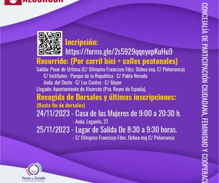 Los y las interesadas en participar en esta marcha pueden inscribirse en el enlace: https://forms.gle/2s5929qqeyepKuHu9 así como en la Casa de las Mujeres (avenida de Leganés, 27). Aquellas personas que se inscriban recibirán una camiseta un dorsal. Posteriormente, a la llegada al ayuntamiento recibirán una barrita energética, fruta y bebida. No obstante, esta actividad está abierta a toda la ciudadanía que quiera participar de forma libre para acompañar a los y las participantes inscritos.