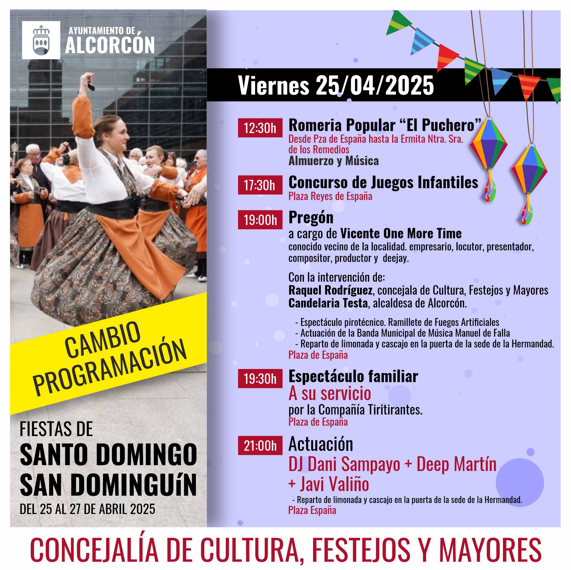 El viernes 25 de abril tendrá lugar el pregón, a cargo del conocido vecino de la localidad además de empresario, locutor, presentador, compositor, productor y DJ, Vicente One More Time.